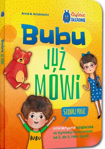 „Bubu już mówi. Szukaj mnie!” to niepowtarzalna propozycja dla rodziców dzieci w wieku od 2 do 5 lat, które rozwijają umiejętność sprawnego posługiwania się mową. Książeczka jest interaktywna, czyli przeznaczona do wspólnej zabawy z dzieckiem, przygotowana w ten sposób, by wywoływać aktywność malucha i skłaniać go do czynnego udziału w lekturze. Stymuluje nie tylko mowę, ale też pamięć, koncentrację, percepcję wzrokową i motorykę, które są niezbędne dla prawidłowego rozwoju dziecka.