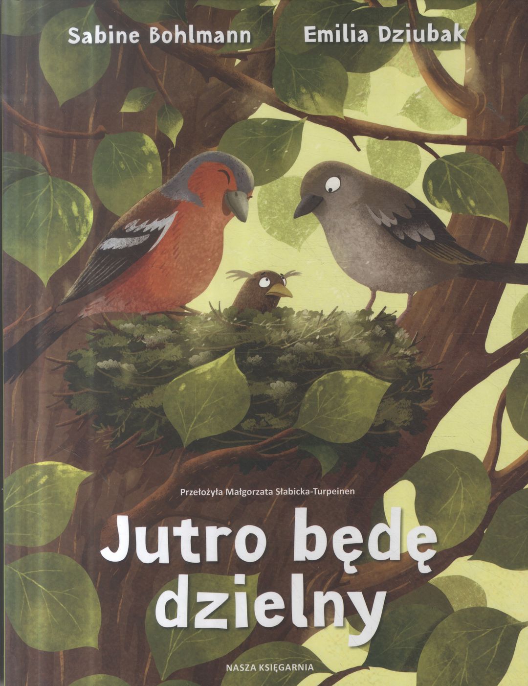 Pewnego dnia Ptasia Mama złożyła pięć jaj. Niedługo wykluło się z nich czworo piskląt, tylko piąte potrzebowało więcej czasu. Podobnie było, gdy maluchy uczyły się latać. Inne ptaki naśmiewały się z piątego pisklaka i namawiały Ptasią Mamę, by wypchnęła go z gniazda. Ale Ptasia Mama była pewna, że właściwy moment po prostu jeszcze nie nadszedł. Czy mały ptaszek kiedyś zbierze się na odwagę i rozwinie skrzydła? Jutro będę dzielny to opowieść o tym, że trzeba wierzyć w dzieci – nawet wtedy, gdy potrzebują trochę więcej czasu... [nota wydawcy]